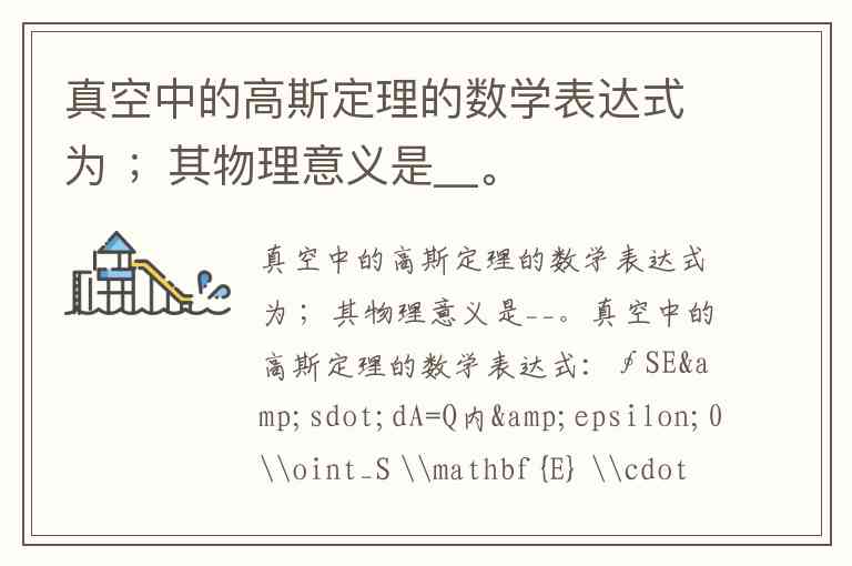 真空中的高斯定理的数学表达式为 ;其物理意义是__。