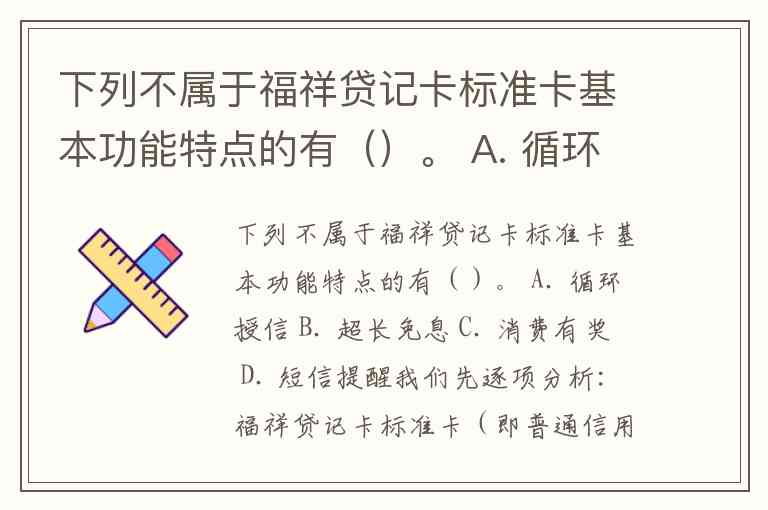 下列不属于福祥贷记卡标准卡基本功能特点的有()。 A. 循环授信 B. 超长免息 C. 消费有奖 D. 短信提醒