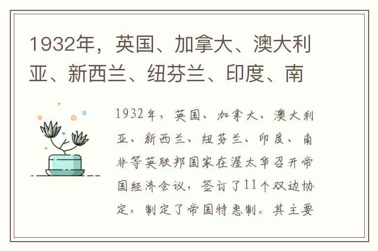本题的关键在于对帝国特惠制内容与背景的理解。