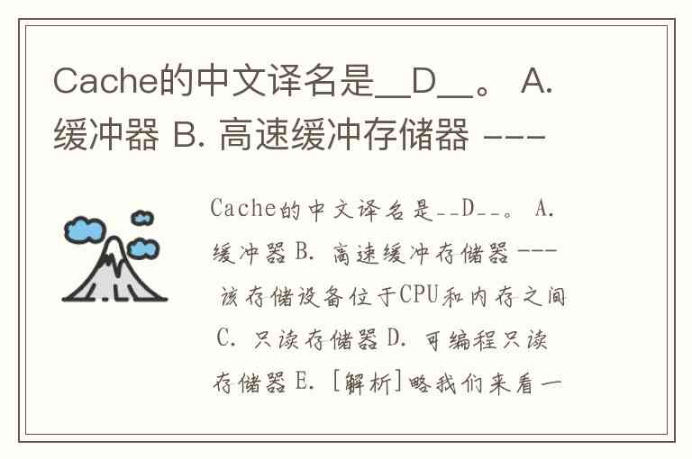 因为“Cache”的中文译名应该是 高速缓冲存储器,对应原选项B。
