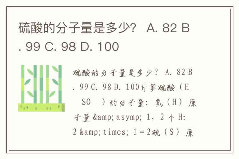 硫酸的分子量是多少? A. 82 B. 99 C. 98 D. 100