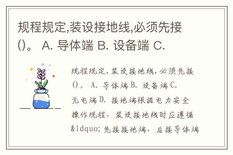 规程规定,装设接地线,必须先接()。 A. 导体端 B. 设备端 C. 无电端 D. 接地端