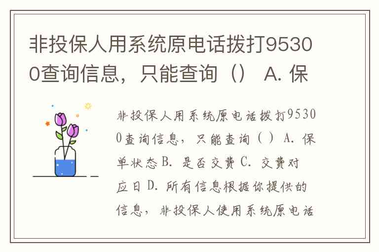 非投保人用系统原电话拨打95300查询信息,只能查询() A. 保单状态 B. 是否交费 C. 交费对应日 D. 所有信息