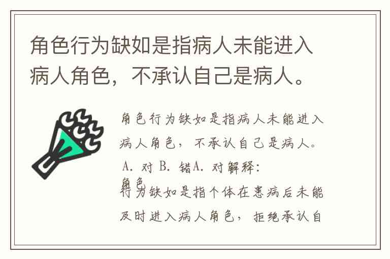 角色行为缺如是指病人未能进入病人角色,不承认自己是病人。 A. 对 B. 错
