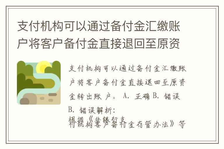 支付机构可以通过备付金汇缴账户将客户备付金直接退回至原资金转出账 户。 A. 正确 B. 错误