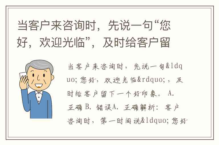 当客户来咨询时,先说一句“您好,欢迎光临”,及时给客户留下一个好印象。 A. 正确 B. 错误