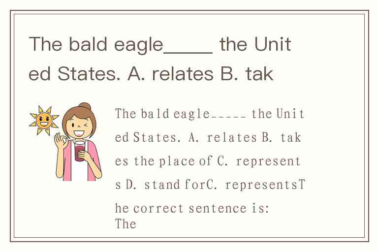 The bald eagle_____ the United States. A. relates B. takes the place of C. represents D. stand for