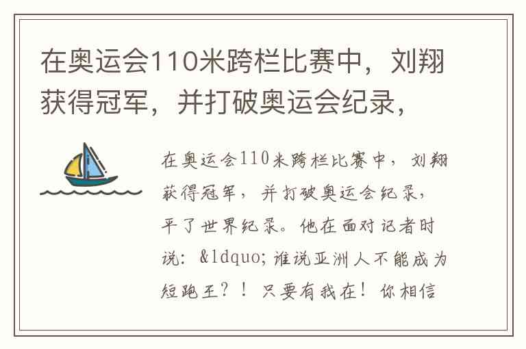 他是亚洲人、黄皮肤,在男子110米栏(短跨)夺冠,打破奥运纪录,平世界纪录。