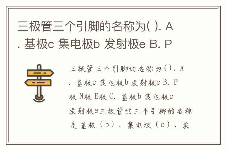 三极管三个引脚的名称为( ). A. 基极c 集电极b 发射极e B. P极 N极 E极 C. 基极b 集电极c 发射极e