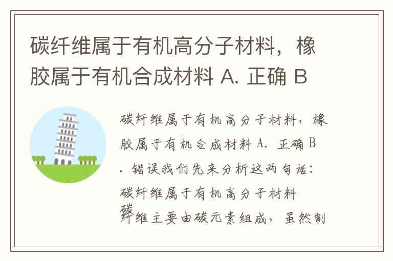碳纤维属于有机高分子材料,橡胶属于有机合成材料 A. 正确 B. 错误