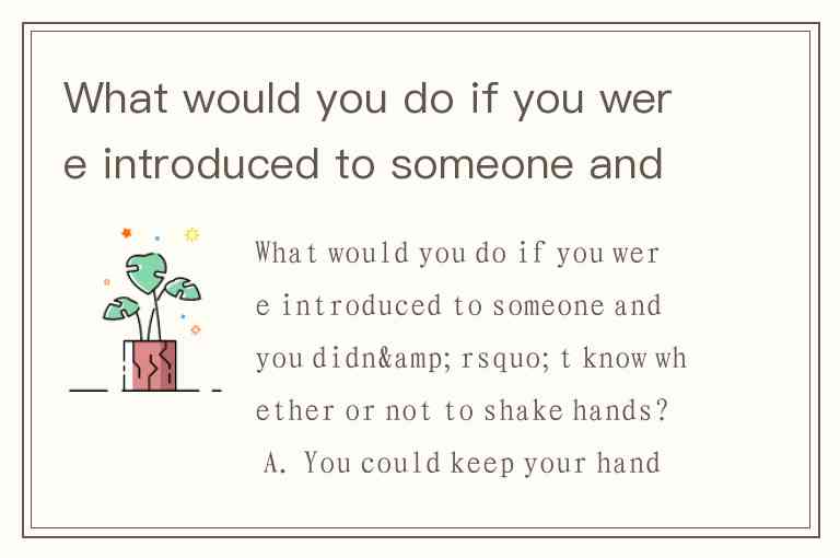 What would you do if you were introduced to someone and you didn’t know whether or not to shake hands? A. You could keep your hands in your pockets in order to avoid shaking hands. B. You could wait and see what the other person does and then you could do the same (shake or don’t shake hands). C. You could be the first person to give your hand.