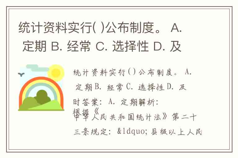 统计资料实行( )公布制度。 A. 定期 B. 经常 C. 选择性 D. 及时