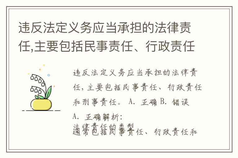 违反法定义务应当承担的法律责任,主要包括民事责任、行政责任和刑事责任。 A. 正确 B. 错误