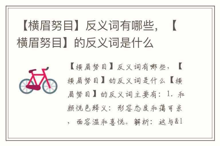 解析:直接针对“横眉”(凶狠的眉毛)和“努目”(瞪大眼睛),反义为“慈眉”(慈祥的眉毛)和“善目”(友善的眼神)。