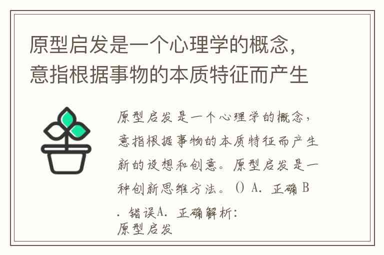 原型启发是一个心理学的概念,意指根据事物的本质特征而产生新的设想和创意。原型启发是一种创新思维方法。() A. 正确 B. 错误