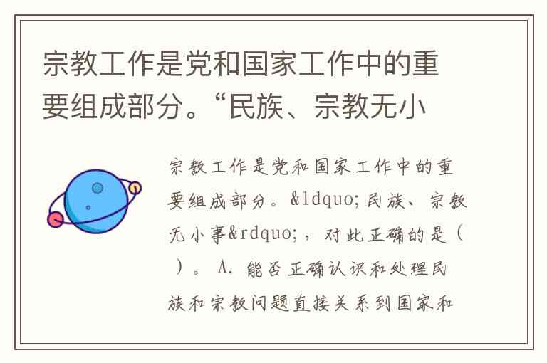 A 项正确:符合“民族、宗教无小事”的内涵,强调正确处理民族、宗教问题对国家和社会的稳定至关重要。