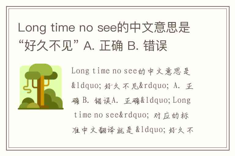 Long time no see的中文意思是“好久不见” A. 正确 B. 错误