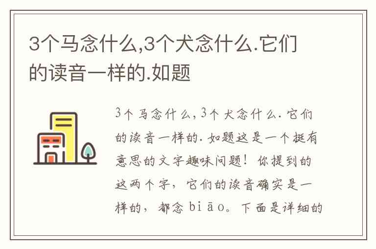 3个马念什么,3个犬念什么.它们的读音一样的.如题