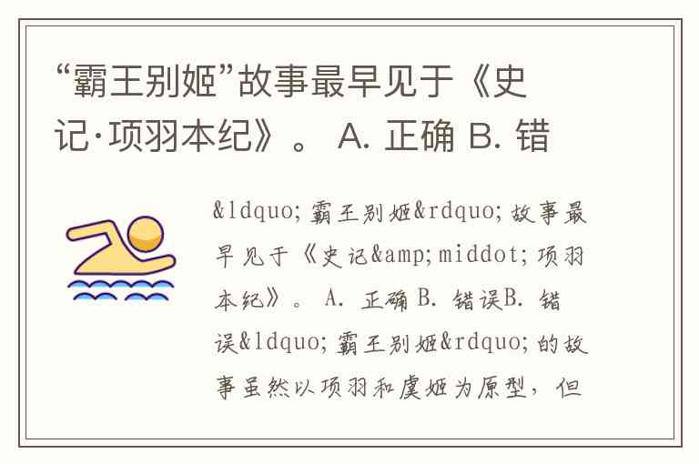 “霸王别姬”故事最早见于《史记·项羽本纪》。 A. 正确 B. 错误