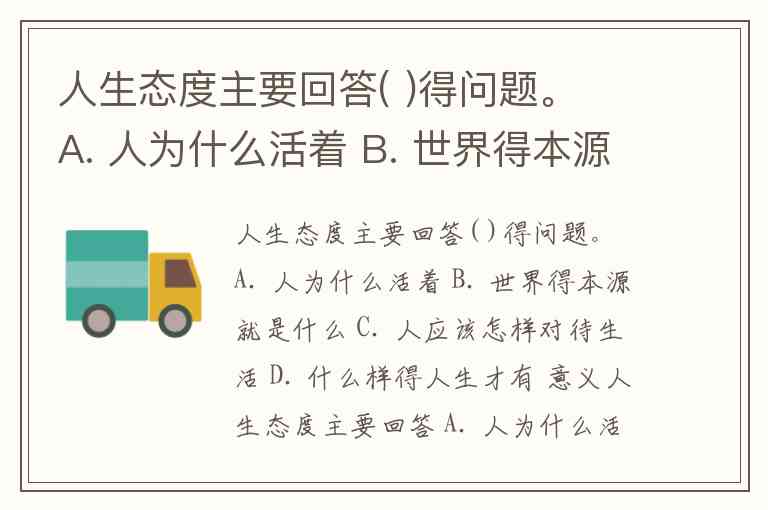 人生态度主要回答( )得问题。 A. 人为什么活着 B. 世界得本源就是什么 C. 人应该怎样对待生活 D. 什么样得人生才有 意义