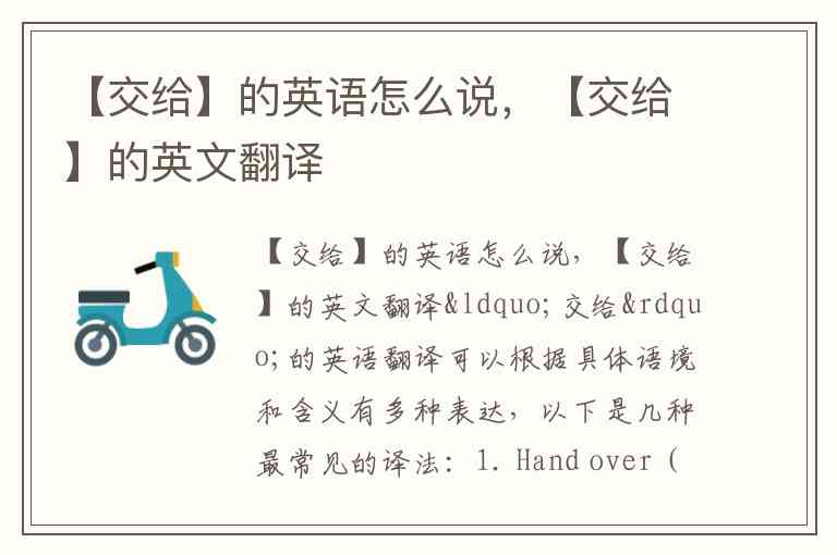 “交给”的英语翻译可以根据具体语境和含义有多种表达,以下是几种最常见的译法: