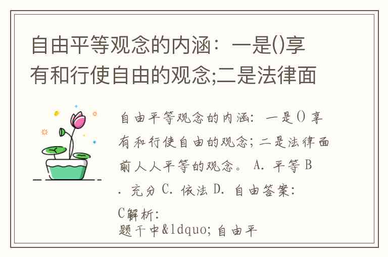 自由平等观念的内涵:一是()享有和行使自由的观念;二是法律面前人人平等的观念。 A. 平等 B. 充分 C. 依法 D. 自由