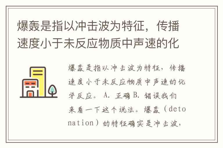 爆轰(detonation)的特征确实是冲击波,但它的传播速度是大于未反应物质中的声速的。题干里说的是“传播速度小于未反应物质中声速”,这其实是爆燃(deflagration)的特征,而不是爆轰。