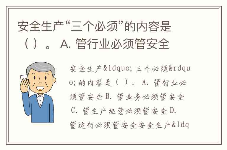 安全生产“三个必须”的内容是( )。 A. 管行业必须管安全 B. 管业务必须管安全 C. 管生产经营必须管安全 D. 管运行必须管安全