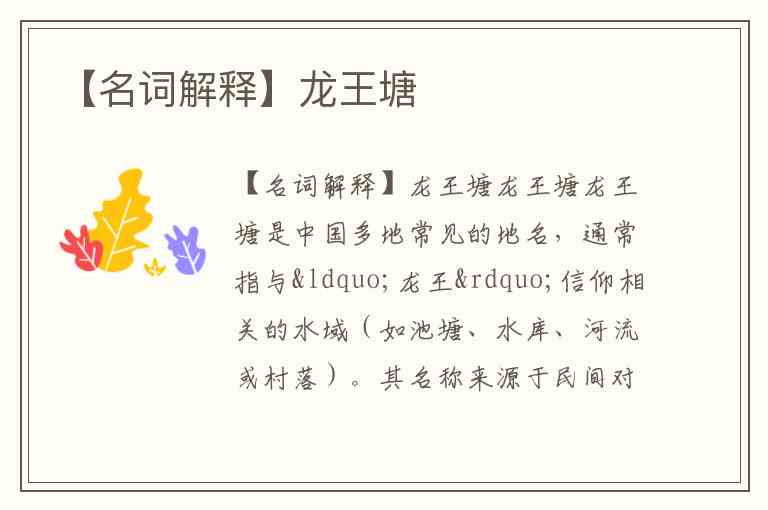 【名词解释】龙王塘