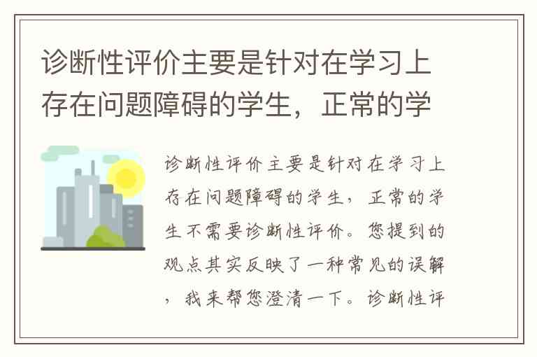 诊断性评价主要是针对在学习上存在问题障碍的学生,正常的学生不需要诊断性评价。