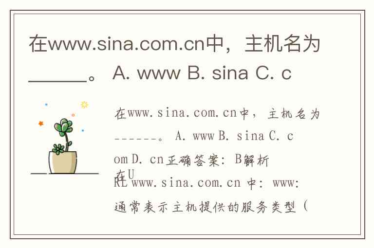 不过要注意,严格网络定义中,“主机名”可以是 www 子域名,但此题选项 B sina 是主机域名中的核心部分,在选择题里 B 是符合常规出题意图的答案。