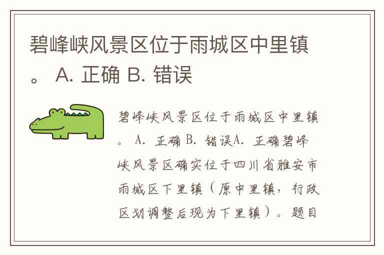 碧峰峡风景区确实位于四川省雅安市雨城区下里镇(原中里镇,行政区划调整后现为下里镇)。题目表述中的“中里镇”是历史上或调整前的常见说法,指向的是同一区域。