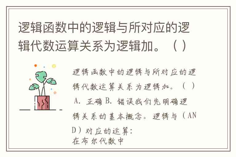 所以,题干说“逻辑与所对应的逻辑代数运算关系为逻辑加”这是错误的。