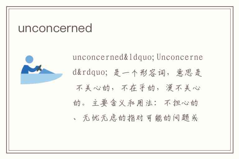 “Unconcerned” 是一个形容词,意思是 不关心的,不在乎的,漠不关心的。