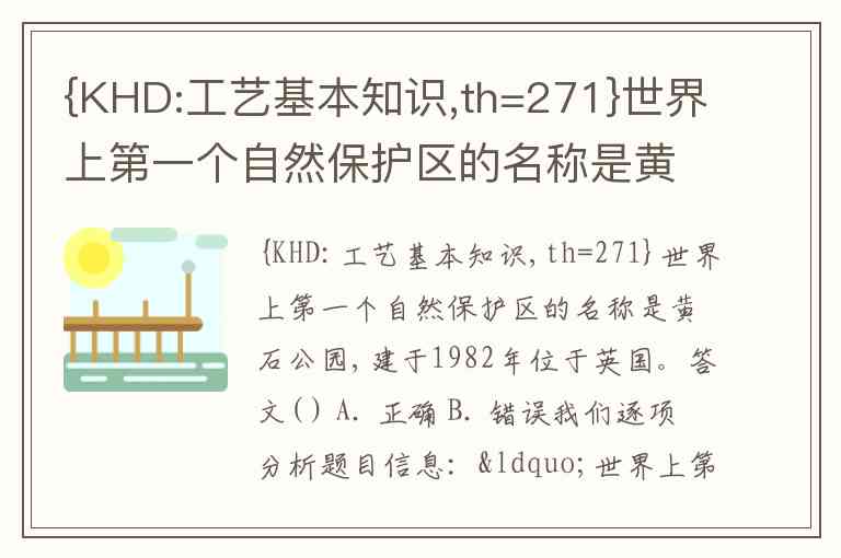 {KHD:工艺基本知识,th=271}世界上第一个自然保护区的名称是黄石公园,建于1982年位于英国。答文( ) A. 正确 B. 错误