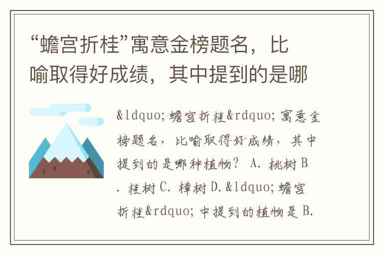 “蟾宫折桂”寓意金榜题名,比喻取得好成绩,其中提到的是哪种植物? A. 桃树 B. 桂树 C. 樟树 D.