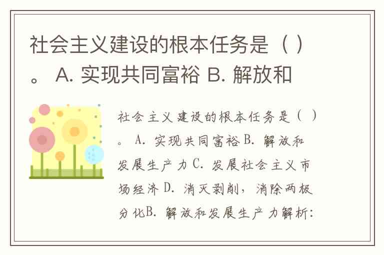 社会主义建设的根本任务是( )。 A. 实现共同富裕 B. 解放和发展生产力 C. 发展社会主义市场经济 D. 消灭剥削,消除两极分化