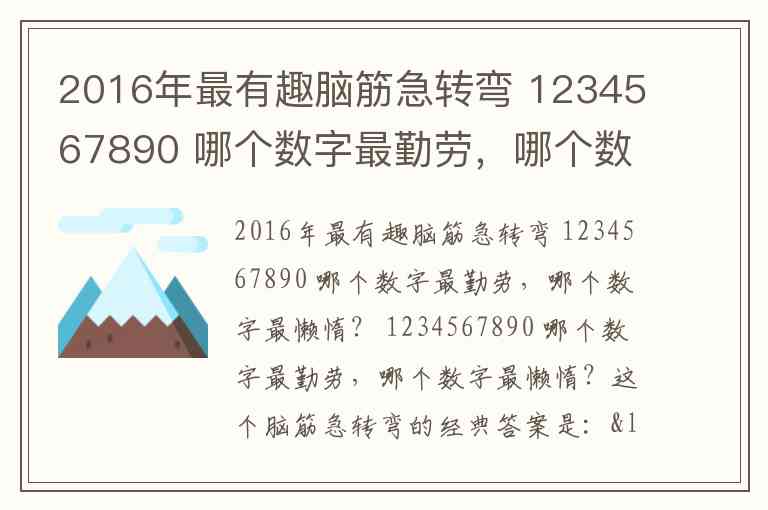 2016年最有趣脑筋急转弯 1234567890 哪个数字最勤劳,哪个数字最懒惰? 1234567890 哪个数字最勤劳,哪个数字最懒惰?