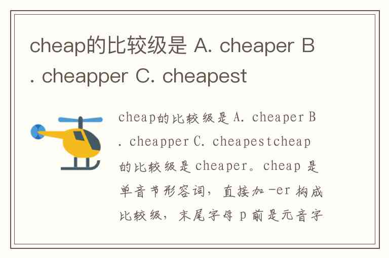 cheap的比较级是 A. cheaper B. cheapper C. cheapest