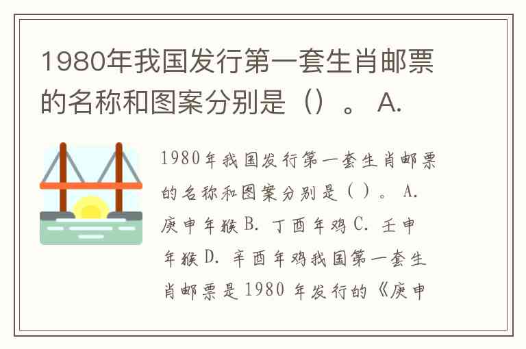 1980年我国发行第一套生肖邮票的名称和图案分别是()。 A. 庚申年猴 B. 丁酉年鸡 C. 壬申年猴 D. 辛酉年鸡