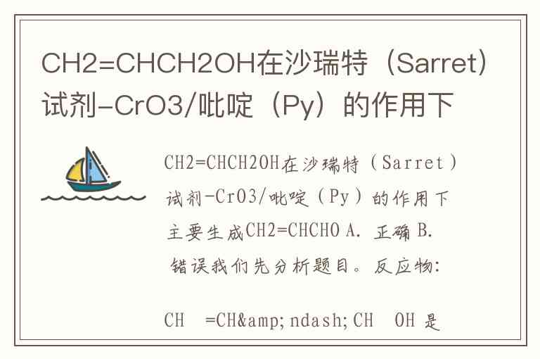 CH2=CHCH2OH在沙瑞特(Sarret)试剂-CrO3/吡啶(Py)的作用下主要生成CH2=CHCHO A. 正确 B. 错误