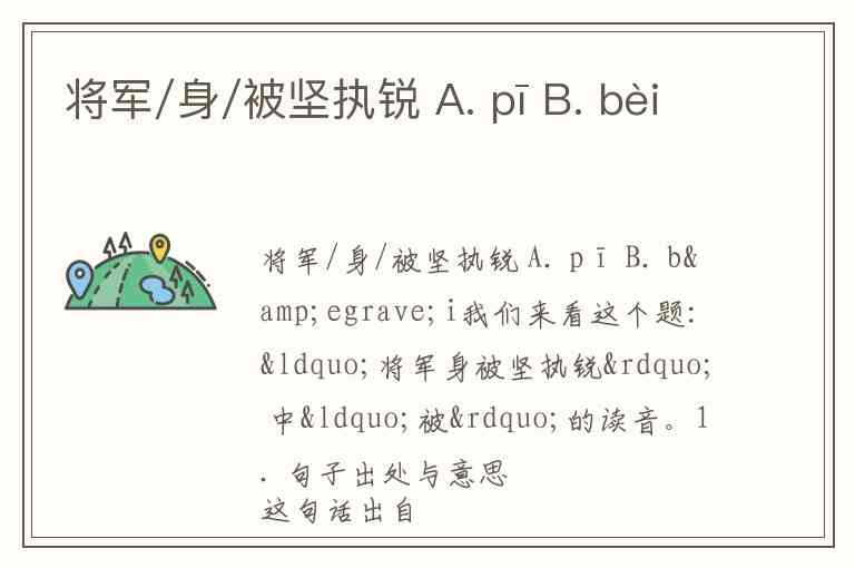 1. 句子出处与意思这句话出自《史记·陈涉世家》,原句为:“将军身被坚执锐,伐无道,诛暴秦……”“身被坚执锐”意思是“亲身穿着坚固的铠甲,拿着锐利的武器”。这里的“被”是动词,通“披”,意思是“穿着”。