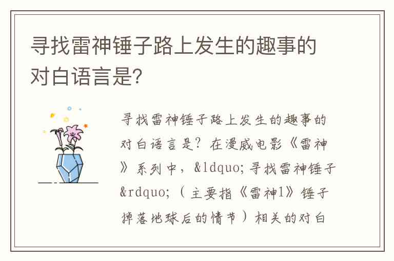 寻找雷神锤子路上发生的趣事的对白语言是?