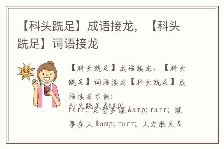 【科头跣足】词语接龙示例:科头跣足 → 足球比赛 → 赛龙夺锦 → 锦绣前程 → 程序问题 → 题名道姓 → 姓甚名谁 → 谁是谁非 → 非同小可 → 可圈可点