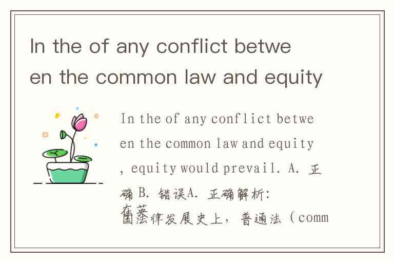 In the of any conflict between the common law and equity, equity would prevail. A. 正确 B. 错误