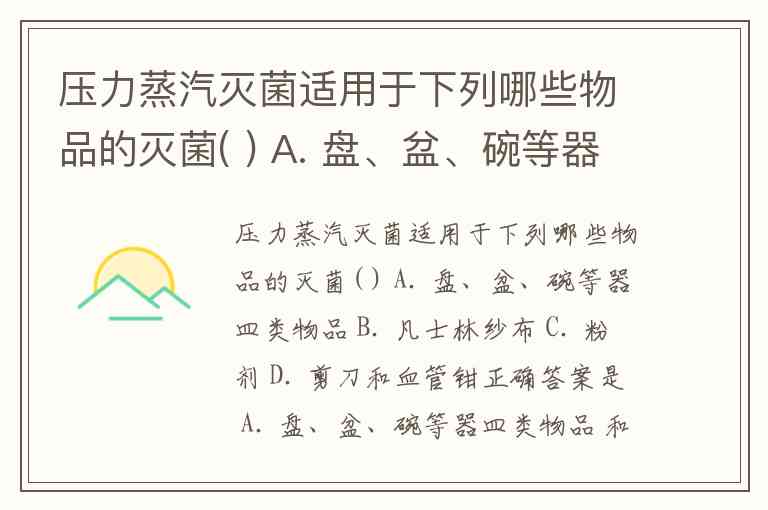 压力蒸汽灭菌适用于下列哪些物品的灭菌( ) A. 盘、盆、碗等器皿类物品 B. 凡士林纱布 C. 粉剂 D. 剪刀和血管钳