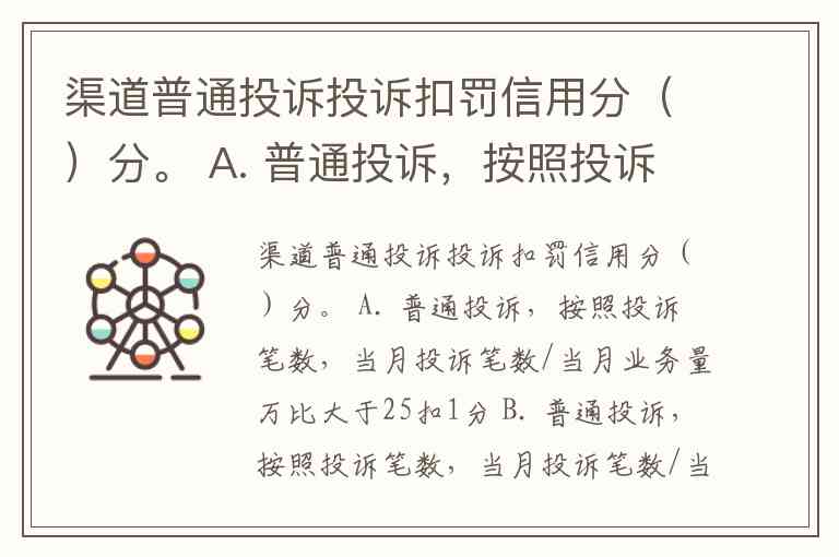 若这是单选题,需要从题干信息“渠道普通投诉投诉扣罚信用分()分”来看,可能它只要求选其中一个(比如最高的一个或最严格的一个),但那样不合理。