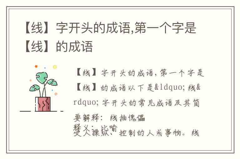 其中较为常用的是 “线抽傀儡” 和 “线断风筝”。若需详解某条成语的出处或用法,可进一步补充提问。