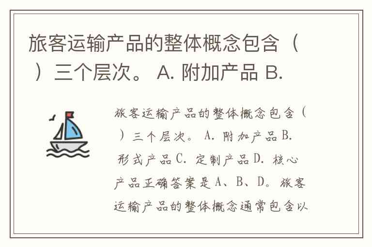 旅客运输产品的整体概念包含( )三个层次。 A. 附加产品 B. 形式产品 C. 定制产品 D. 核心产品