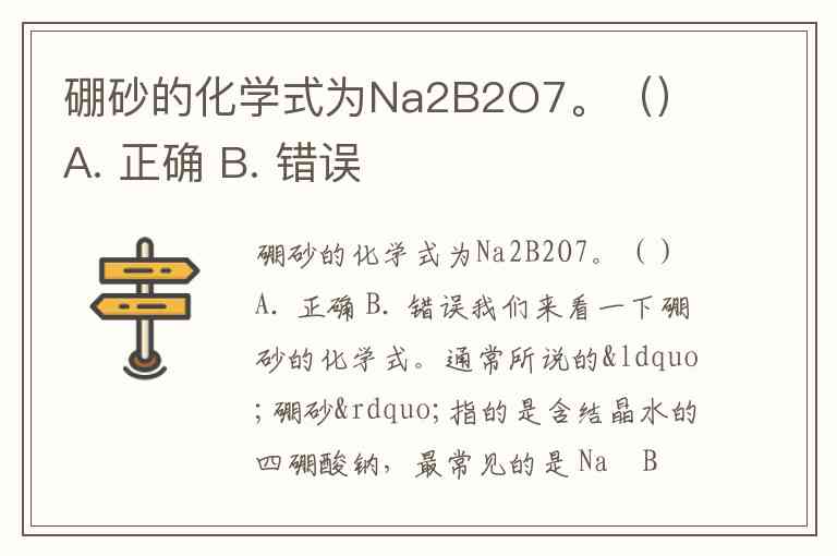 硼砂的化学式为Na2B2O7。() A. 正确 B. 错误
